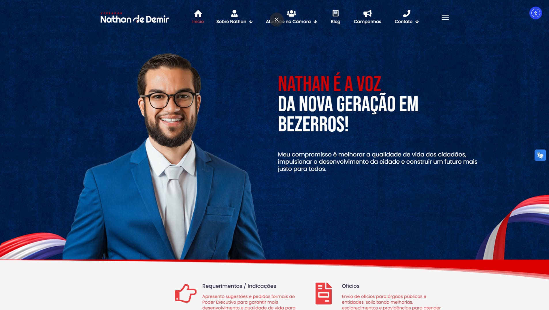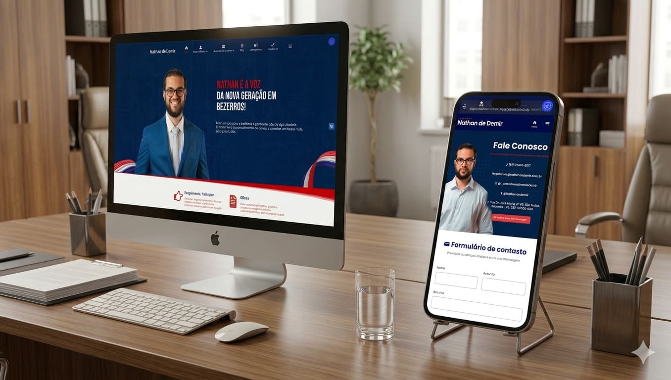 Desenvolvimento de website institucional para o vereador Nathan de Demir, com foco em estruturar uma presença digital organizada e ampliar o canal de comunicação com a população de Bezerros – PE.
