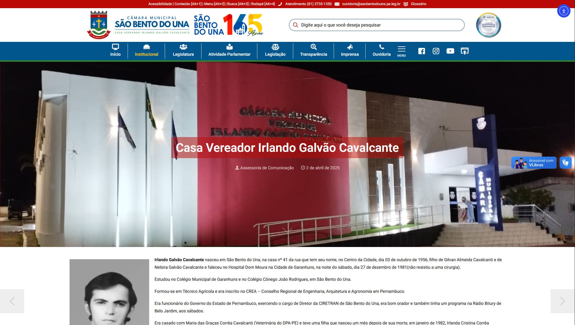 Desenvolvimento de portal institucional para a Câmara Municipal de São Bento do Una – PE, com foco em organizar a comunicação legislativa e ampliar o acesso da população às informações públicas do poder legislativo municipal.